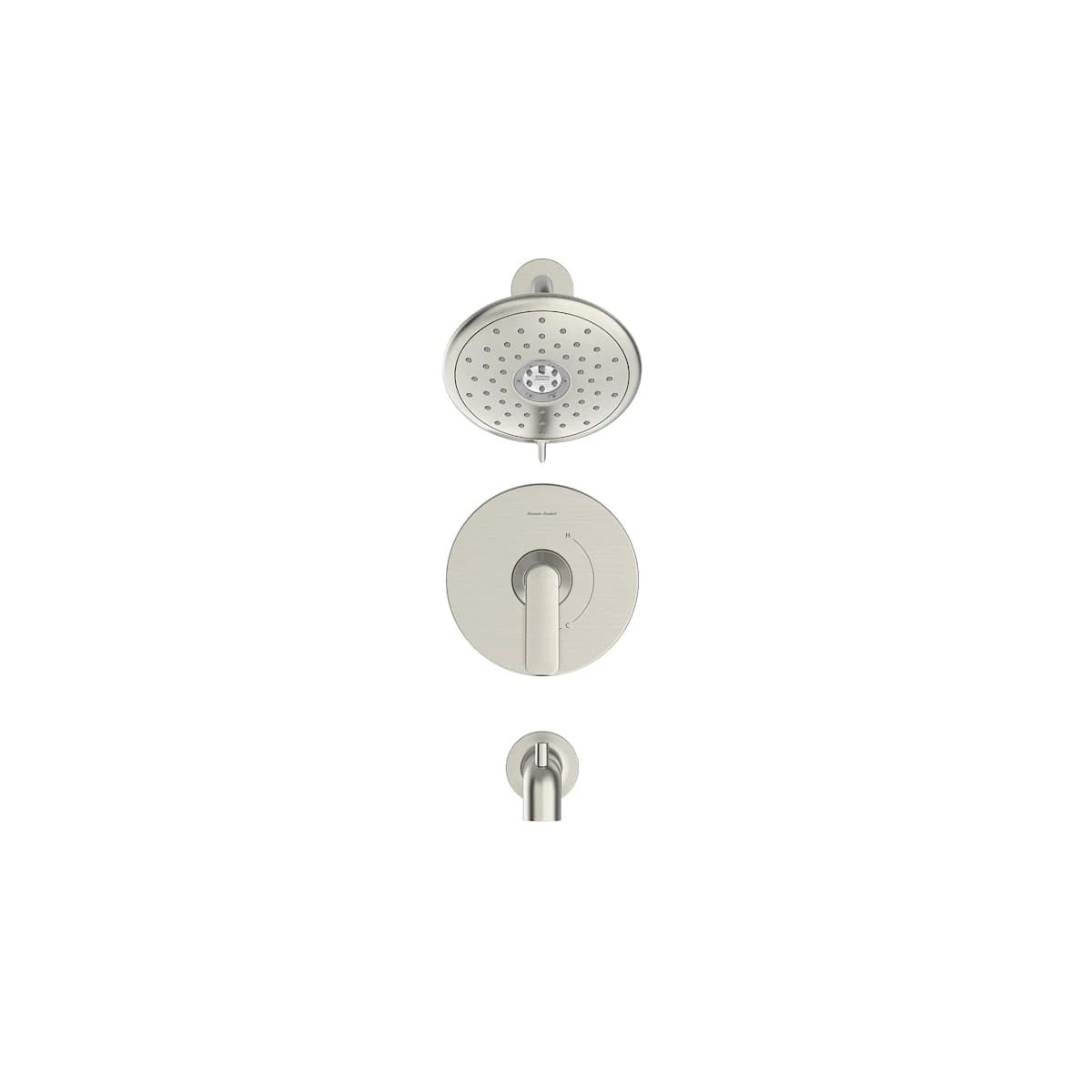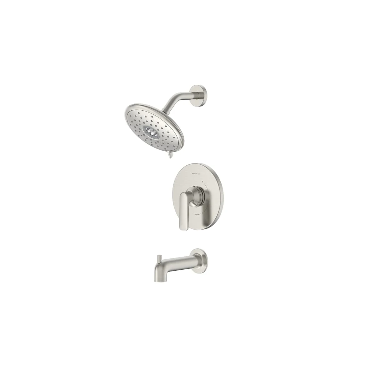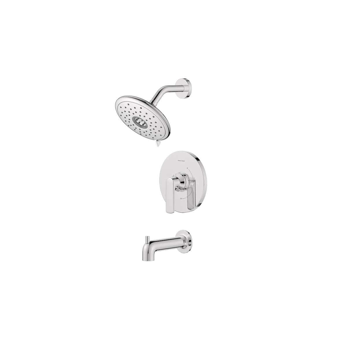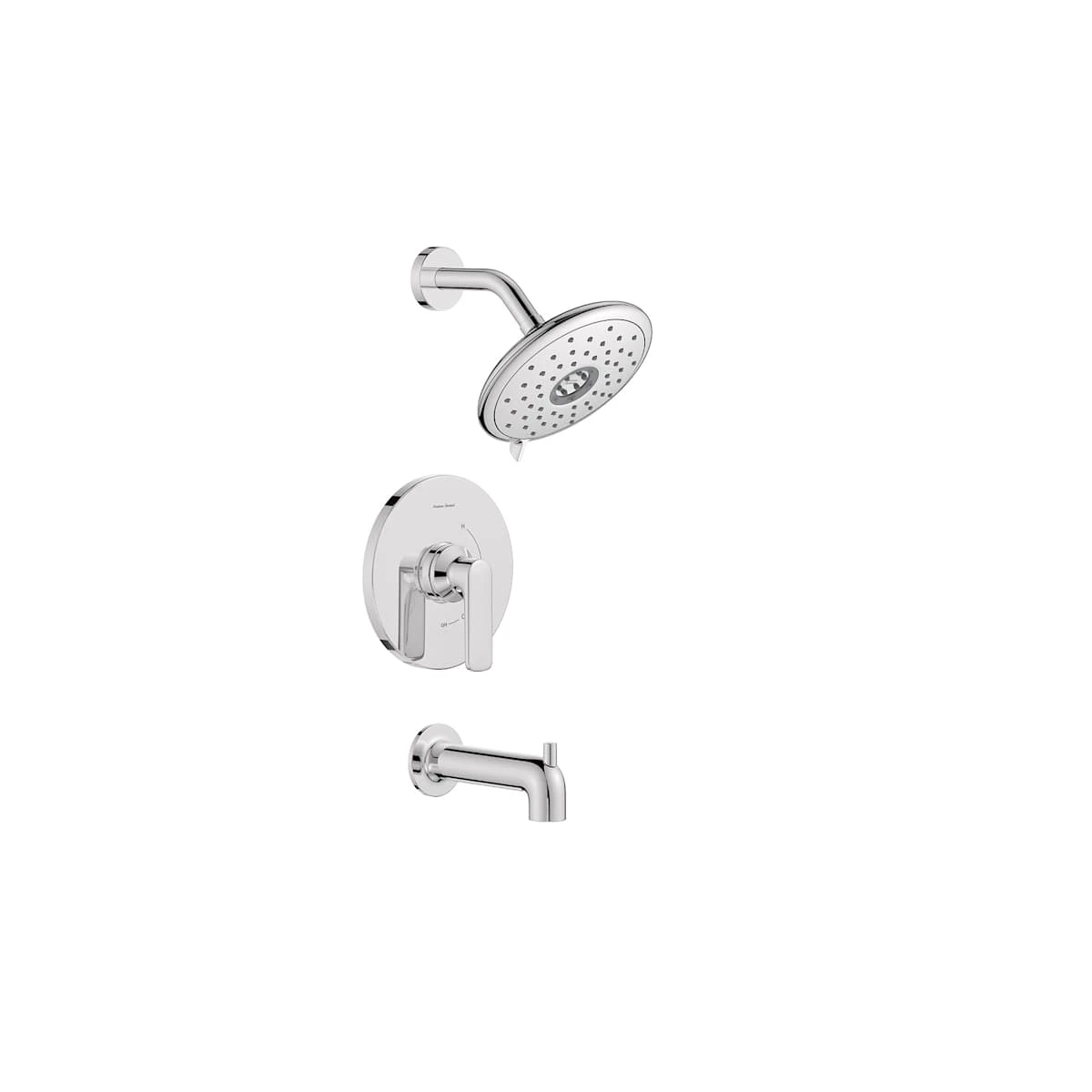 The Aspirations Tub and Shower Trim from American Standard is a contemporary style designed to complement the entire Aspirations collection. It features a versatile 4-function shower head with lever to easily alternate between sprays, and technology to ensure consistent water temperature for the duration of your shower. Includes shower head, metal lever handle with one-piece cartridge, diverter tub spout. Requires Flash Shower Rough-in Valve, sold separately.