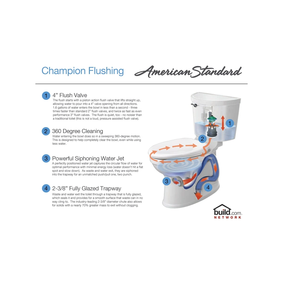- Flush Valve Size: 4″ (diameter of the inlet for water entering bowl from tank)