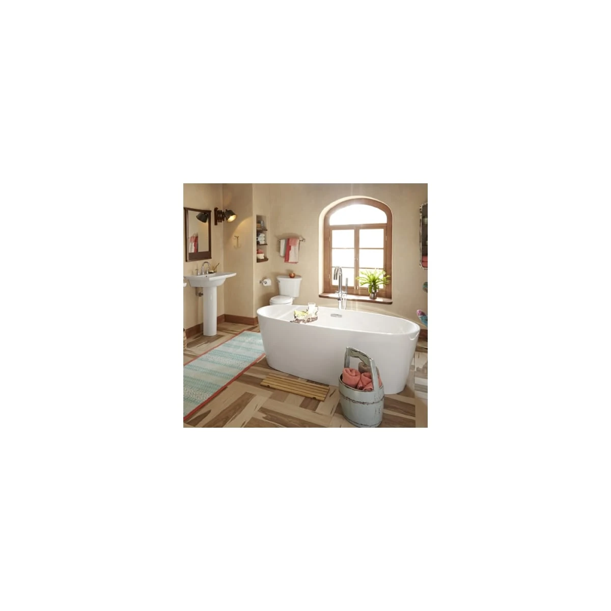 Coastal Serin 68-3/4 in. Acrylic Freestanding Bathtub from American Standard is a sleek soaker so beautiful it beckons you to unwind. A focal point for its soft oval shape and high-gloss luster, Coastal Serin is crafted with rounded edges and a gently sloped interior perfect for leaning back and relaxing.