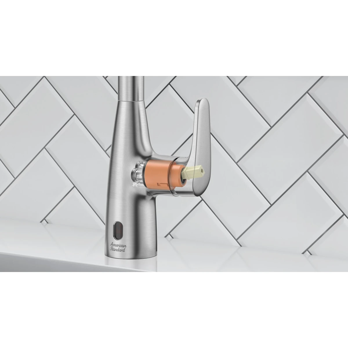 - Touchless, motion-activated on/off faucet