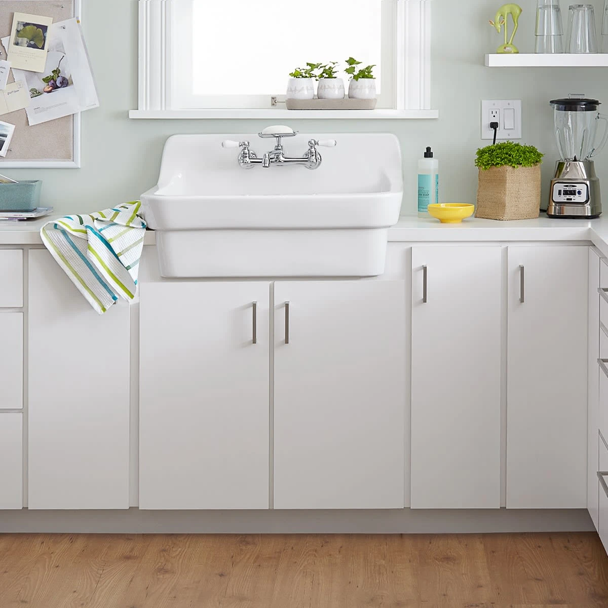 - Can be installed with a closed or open apron front to give an integrated, graceful look to the sink