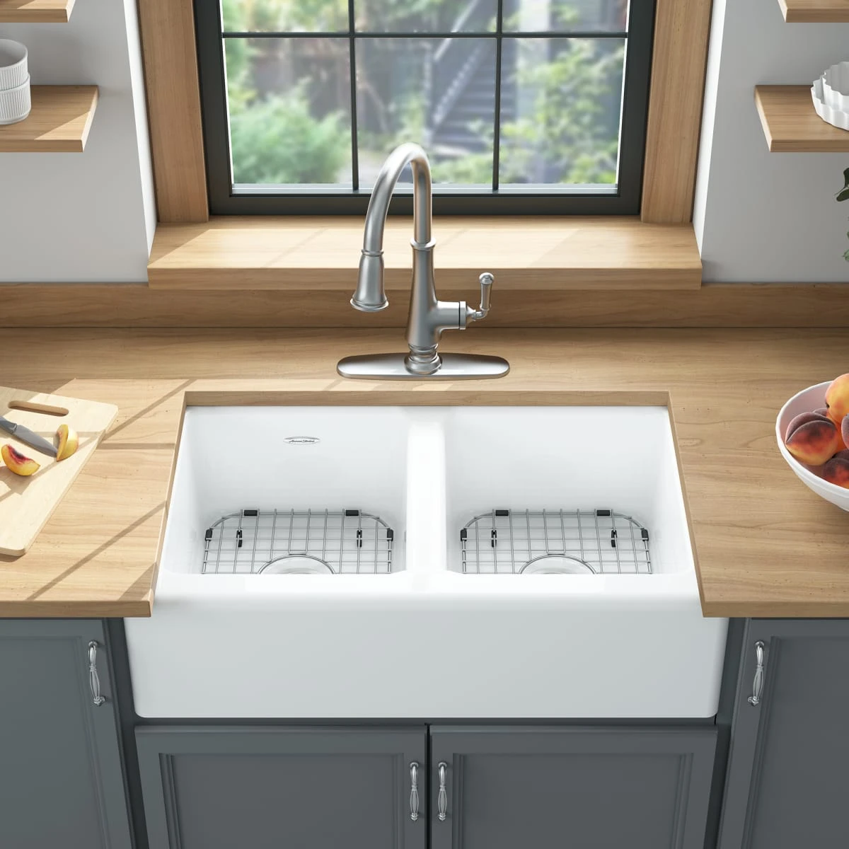 - Cast iron double bowl apron front sink