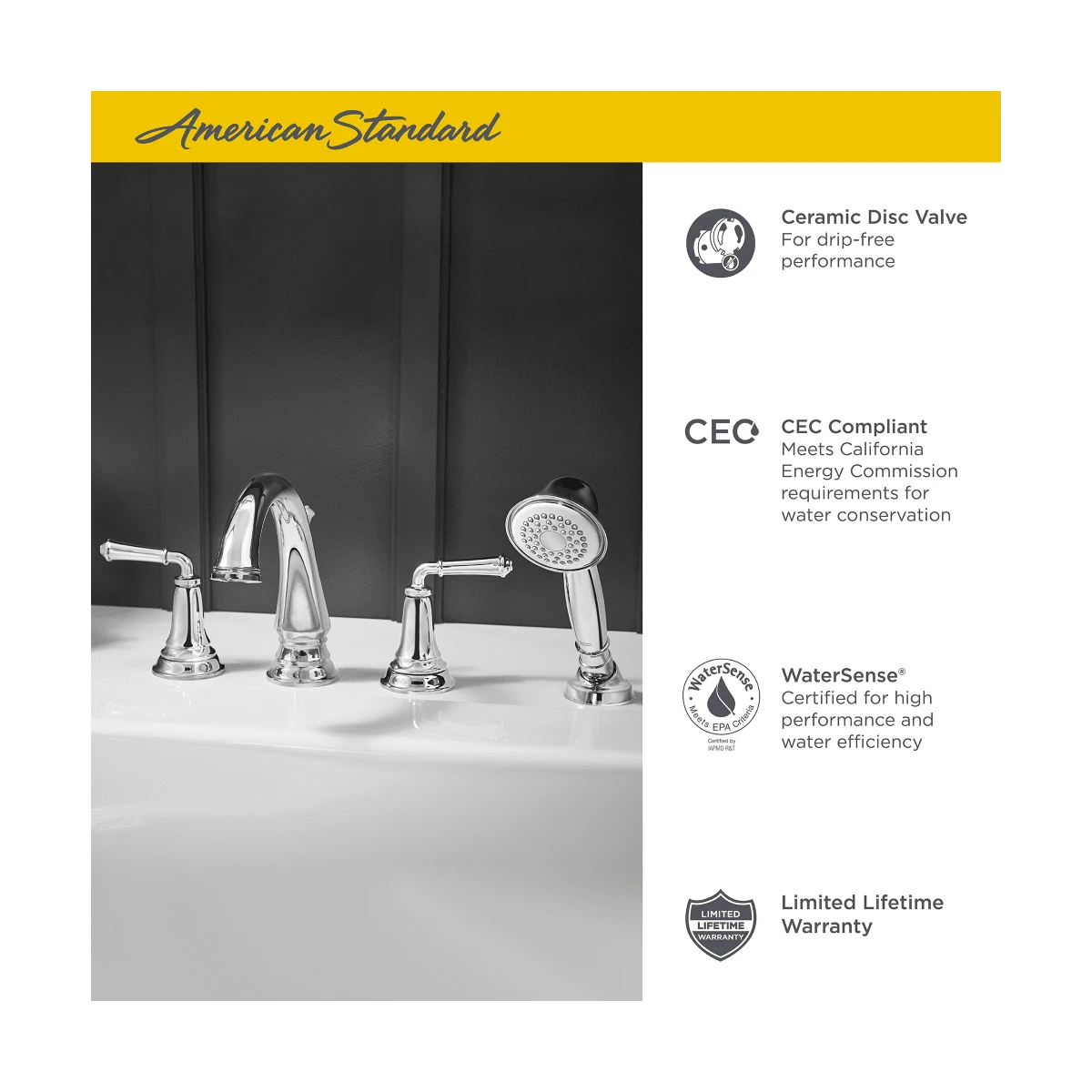 - Hand Shower Flow Rate: 2.5 gallons-per-minute