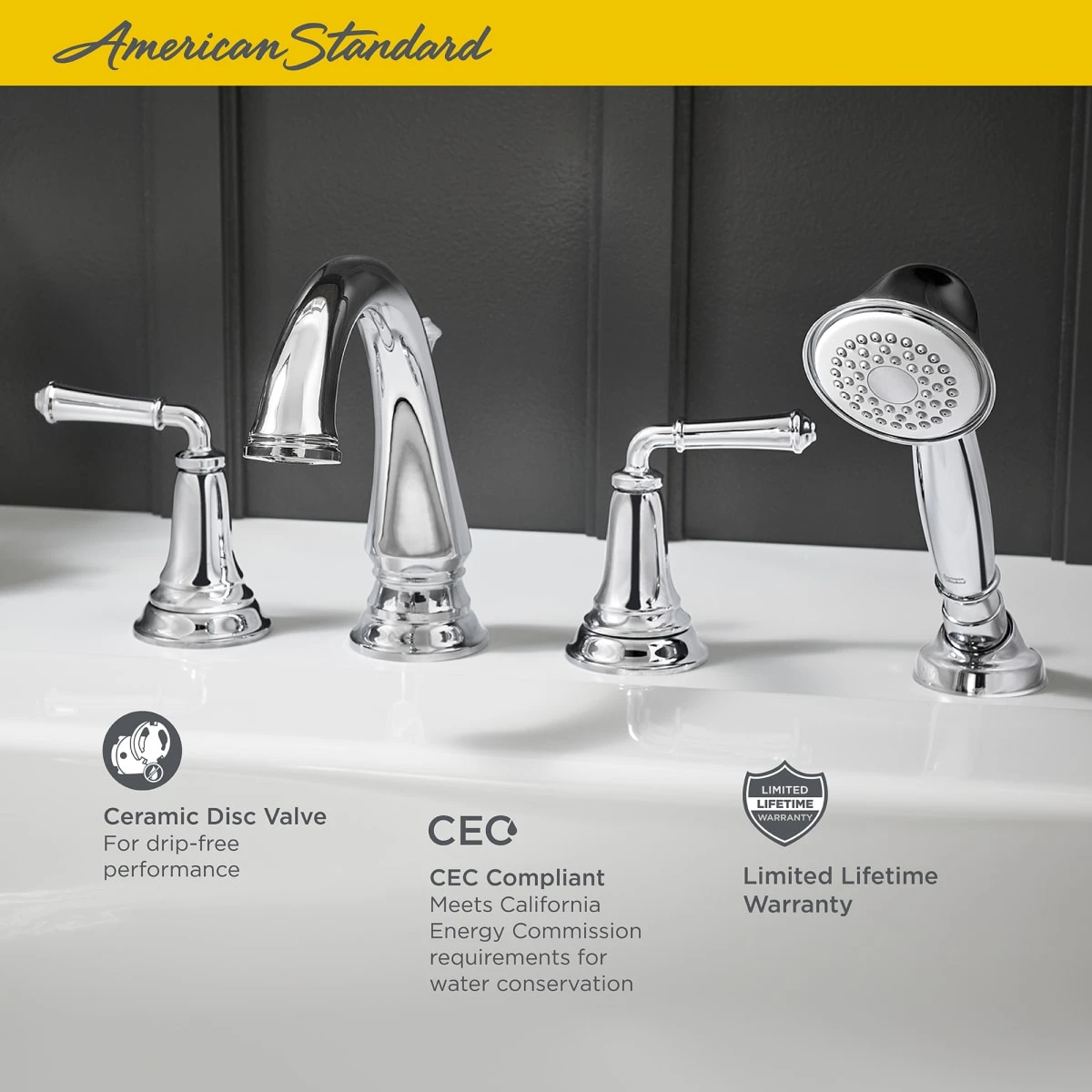 Inspired by the finer points of classic architecture, the Delancey roman tub filler from American Standard captures the refined elegance of stately columns and sublime details. Enduring both in style and performance, drip free Delancey tub filler is available in beautiful, tarnish and scratch resistant finishes.