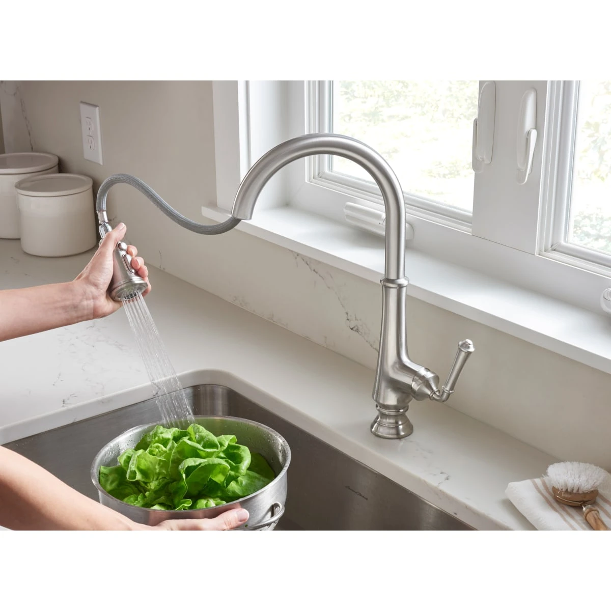 - Swivel spout allows for greater access to all areas of the sink