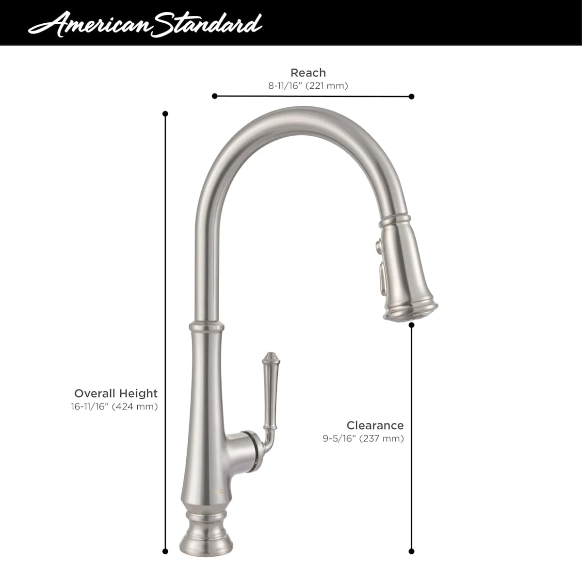 - Spout Height: 9-5/16″ (deck to spout outlet)
