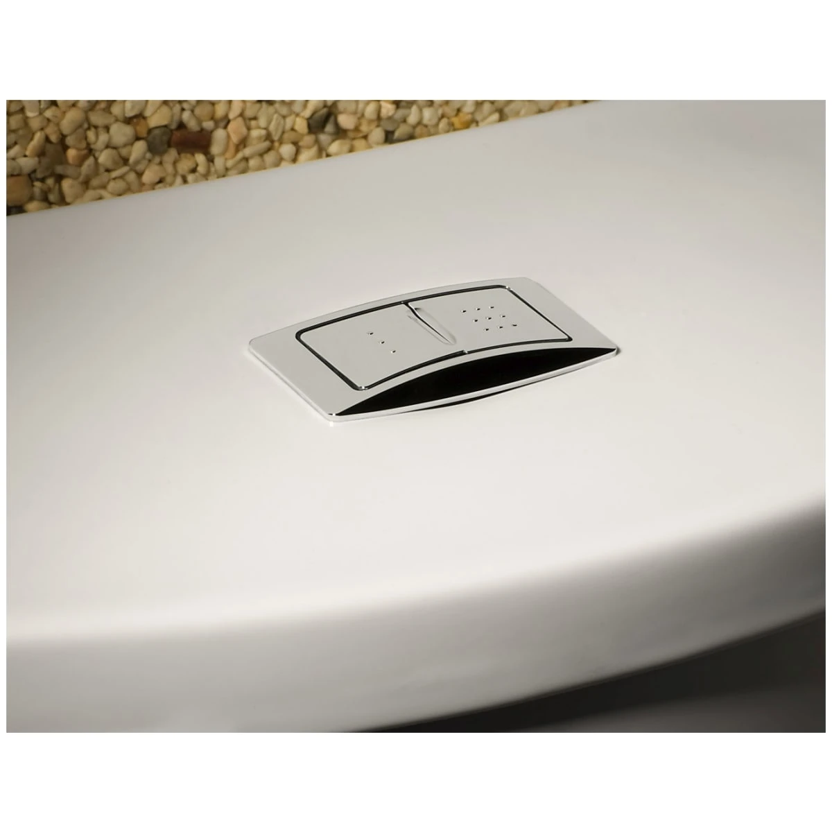 - Dual Flush: The Dual Flush feature makes water conservation easy, while also making the statement that you’ve got the latest in toilet technology. The tank “lever” is actually a dual-button actuator, mounted on the top of the toilet, each button operating independent flush valves within the tank. For liquids, use the left button for a .92 gallon flush. For solids, use the right button for a 1.28 gallon flush.