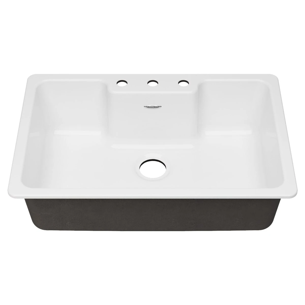 Whether you are updating your existing sink or creating your dream kitchen, the Quince single bowl cast iron sink from American Standard is the perfect combination of rustic charm and modern convenience. This 33″, large basin sink features a thick, smooth and glossy enamel finish that is nonporous, easy to clean, and resistant to stains, chips, and cracks. Crafted from durable cast iron, the Quince single bowl cast iron sink retains heat for effective soaking and dish washing.