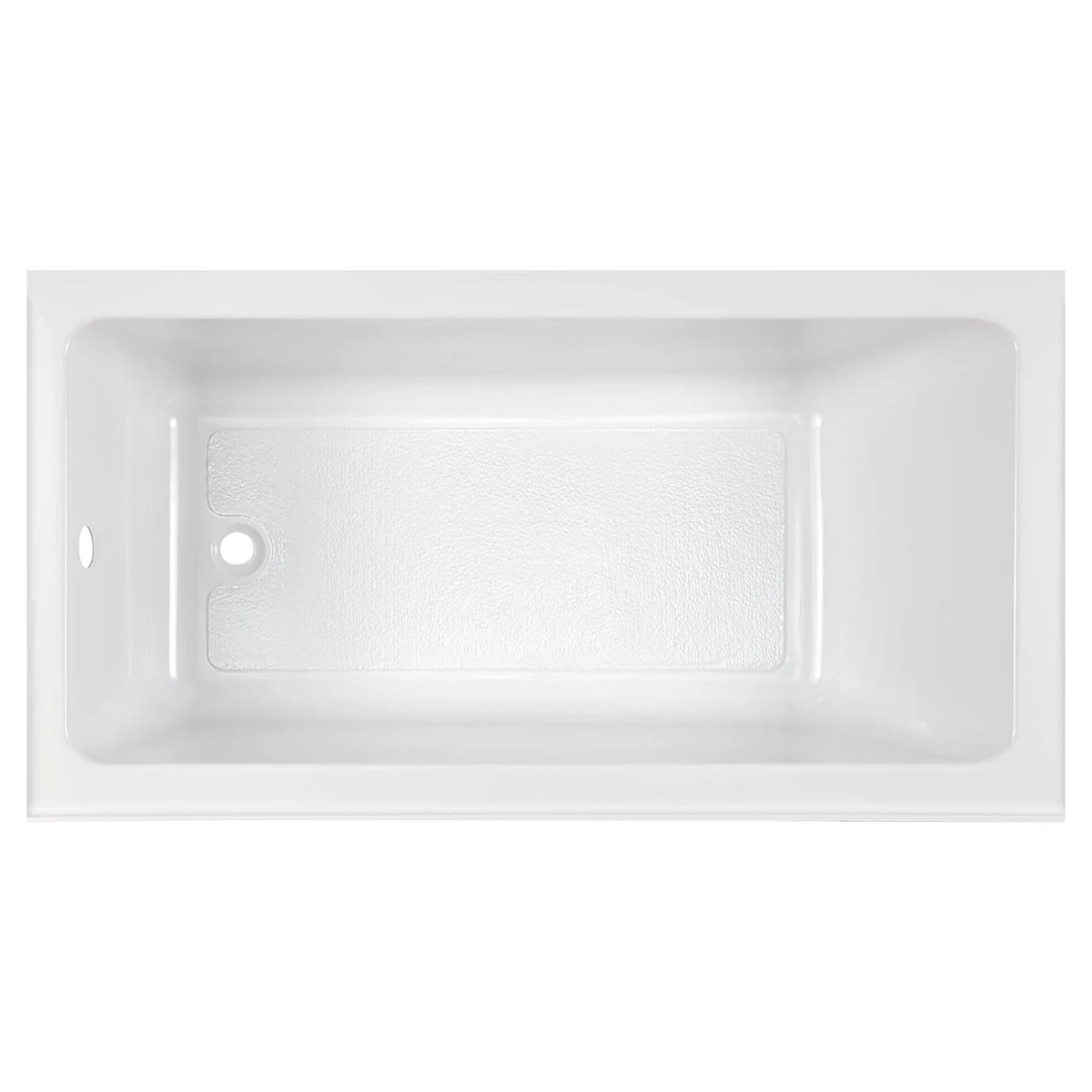 The Studio above floor rough-in bathtub from American Standard features a sleek, integral apron for compatibility with any bathroom design. Made of light weight high gloss acrylic with durable fiberglass reinforcement. The spacious Studio bathtub boasts a comfortable lumbar support and textured slip resistant surface for added safety. The Studio above floor rough-in bathtub is designed with enough space to pipe directly under the bathtub without having to relocate the existing drain.