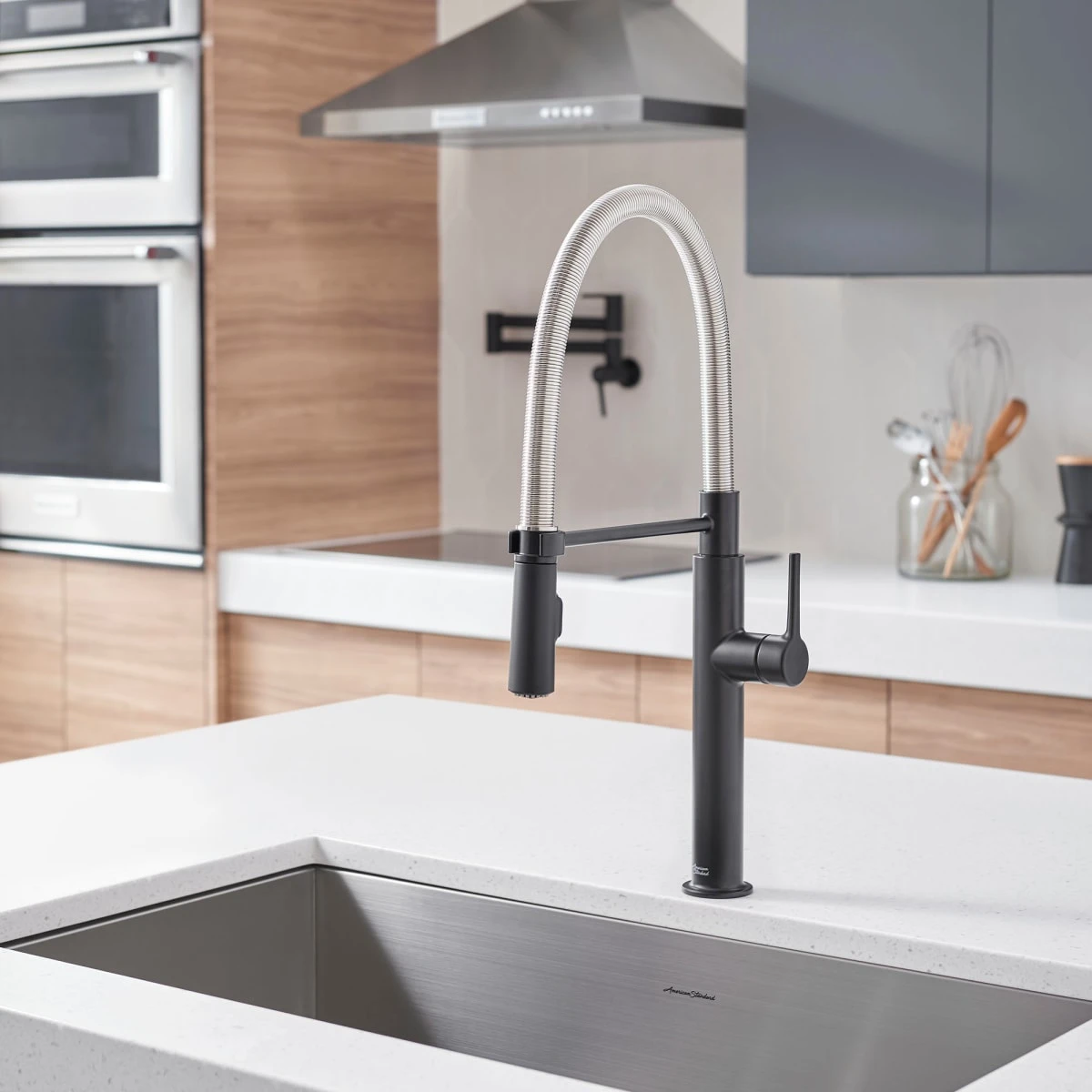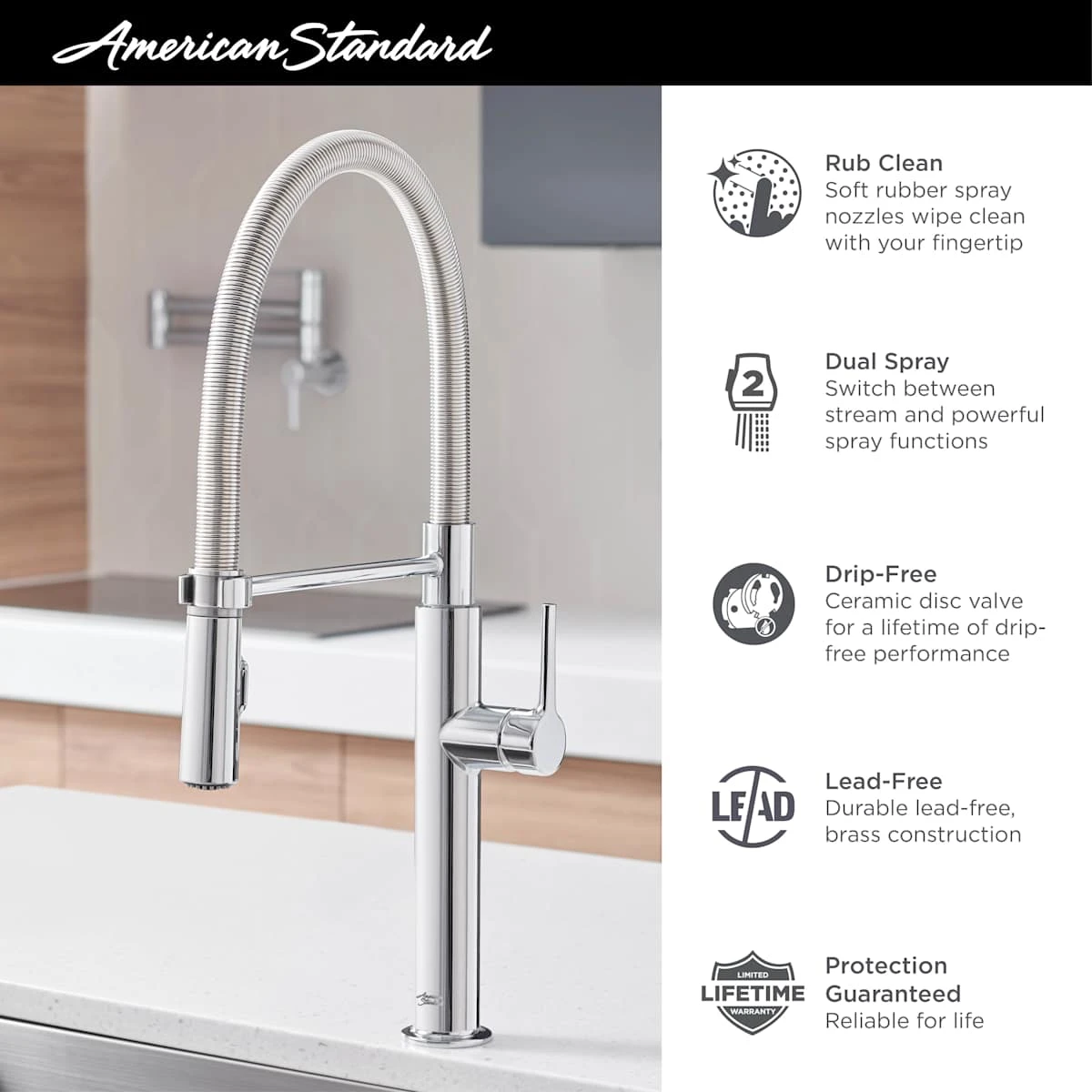 - Flexible stainless steel coil spring for full reach and wipe-clean care
