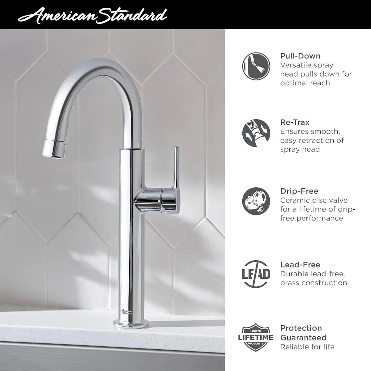 - Re-Trax feature ensures smooth retraction of spray head after use