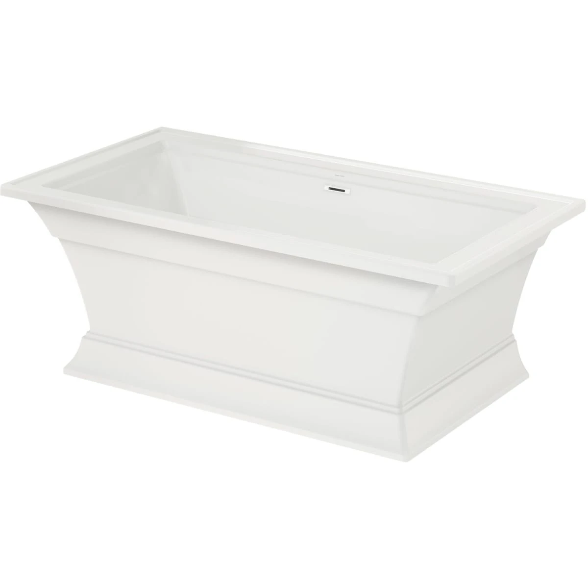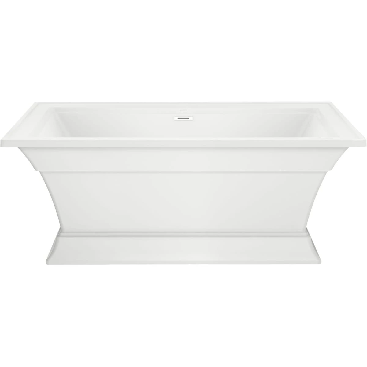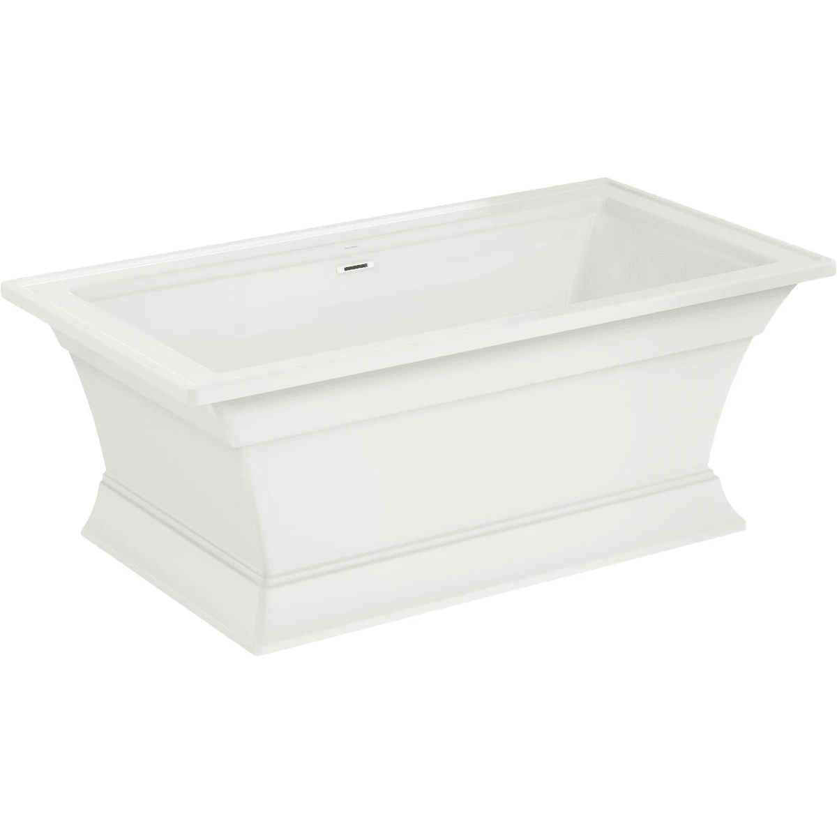 The Town Square S Freestanding Tub by American Standard is the perfect tub for creating an oasis in your home. Featuring an elegant and versatile design that suits any décor style, this architecturally-inspired tub exemplifies stately square shapes and beautiful detailing reminiscent of crown molding. A straight flat back wall of the tub allows for the option of flush-to-the-wall installation. A generous 17-inch depth makes for a luxurious deep soaking tub, and the generously sized ledges provide ample space for a deck-mounted tub filler and all your bathing accessories and essentials. This fiberglass reinforced acrylic bathtub is durable, long-lasting, and has an easy-to-clean high-gloss surface.