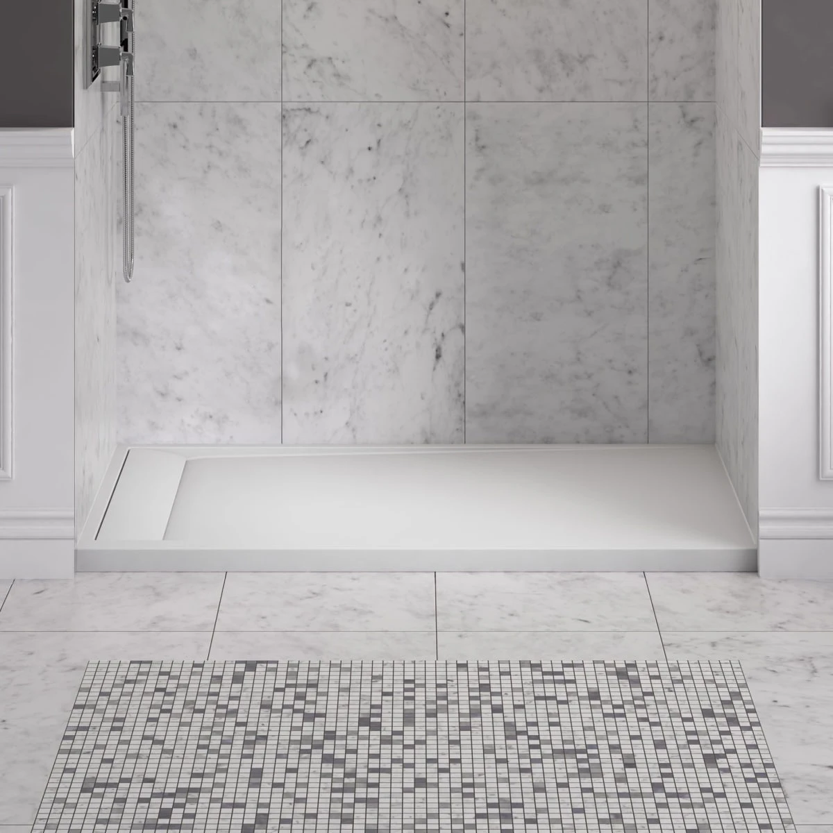 The Townsend 60×36-inch Solid Surface Shower Base by American Standard provides a fresh, upscale option for the perfect shower space. Made from a durable, 100% solid, non-porous material with a smooth matte surface, this shower base offers the same high-quality material throughout its thickness, and is absolutely seamless. Solid surface material is non-porous, which means it is not prone to harboring bacteria or mold, for a shower base that is easily kept clean. Our amazing solid surface material can also be sanded down to remove any chips or scratches over time, without causing any damage to the look or quality of the base.