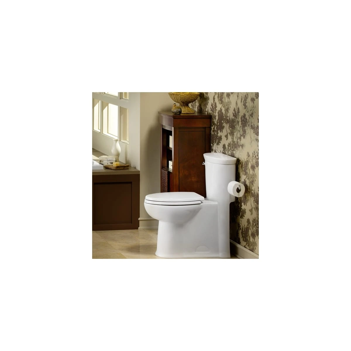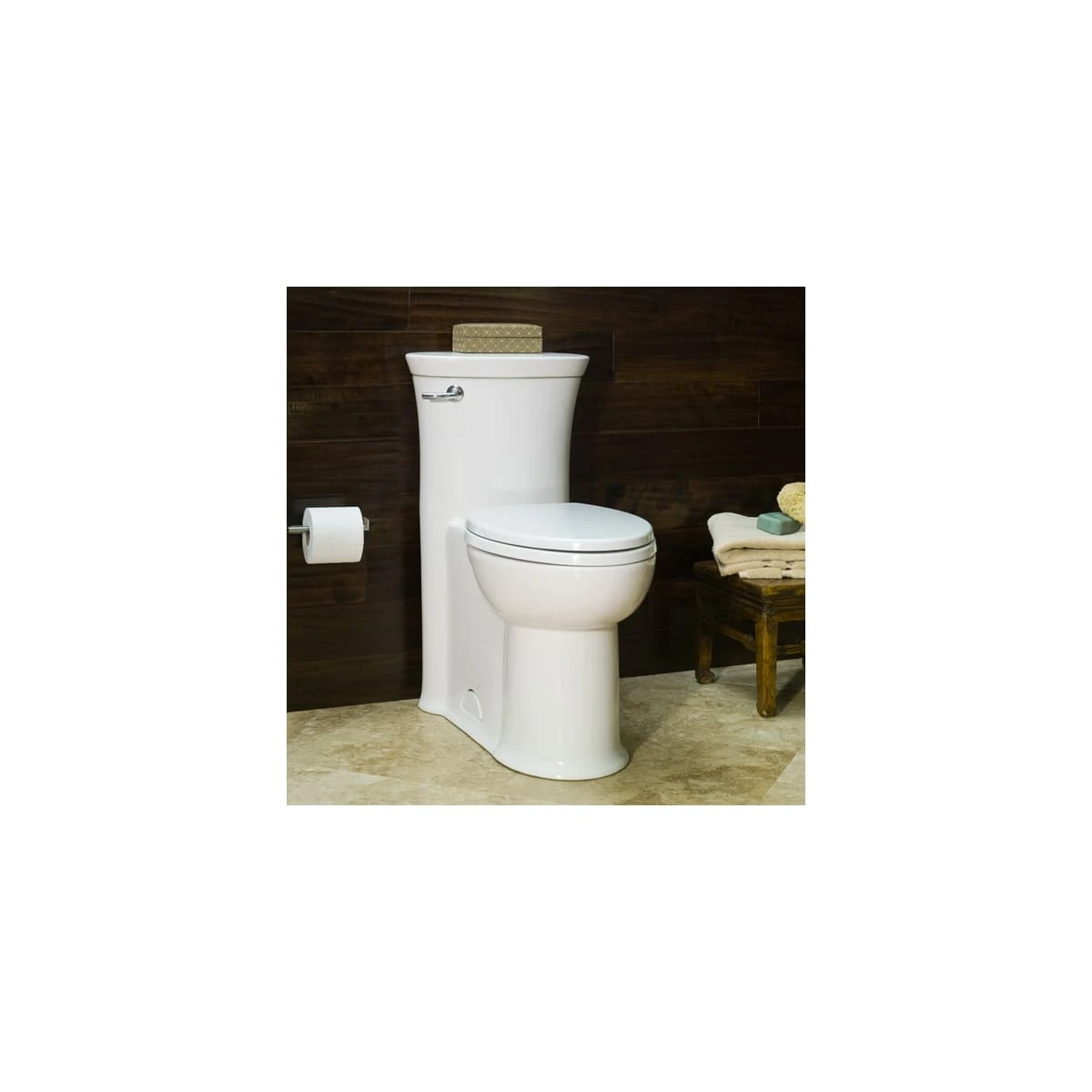 - Includes slow-close toilet seat with push-button removal for easy cleaning