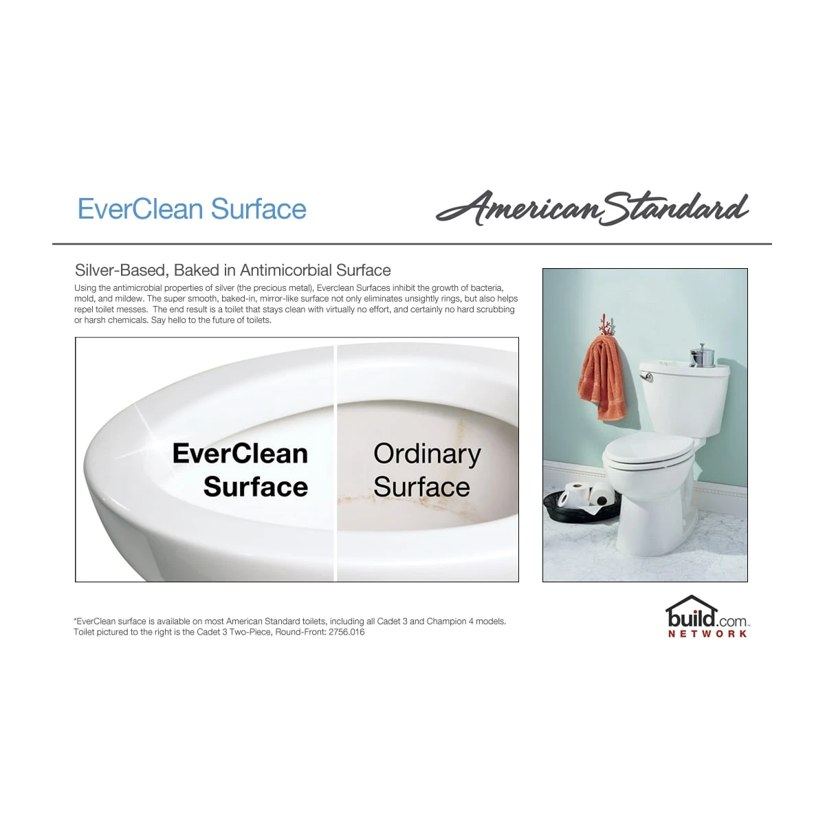 EverClean: Using the antimicrobial properties of silver (the precious metal), Everclean Surfacesinhibit the growth of bacteria, mold, and mildew. The super smooth, baked-in, mirror-like surface not only eliminates water spots, but also helps repel sink messes.